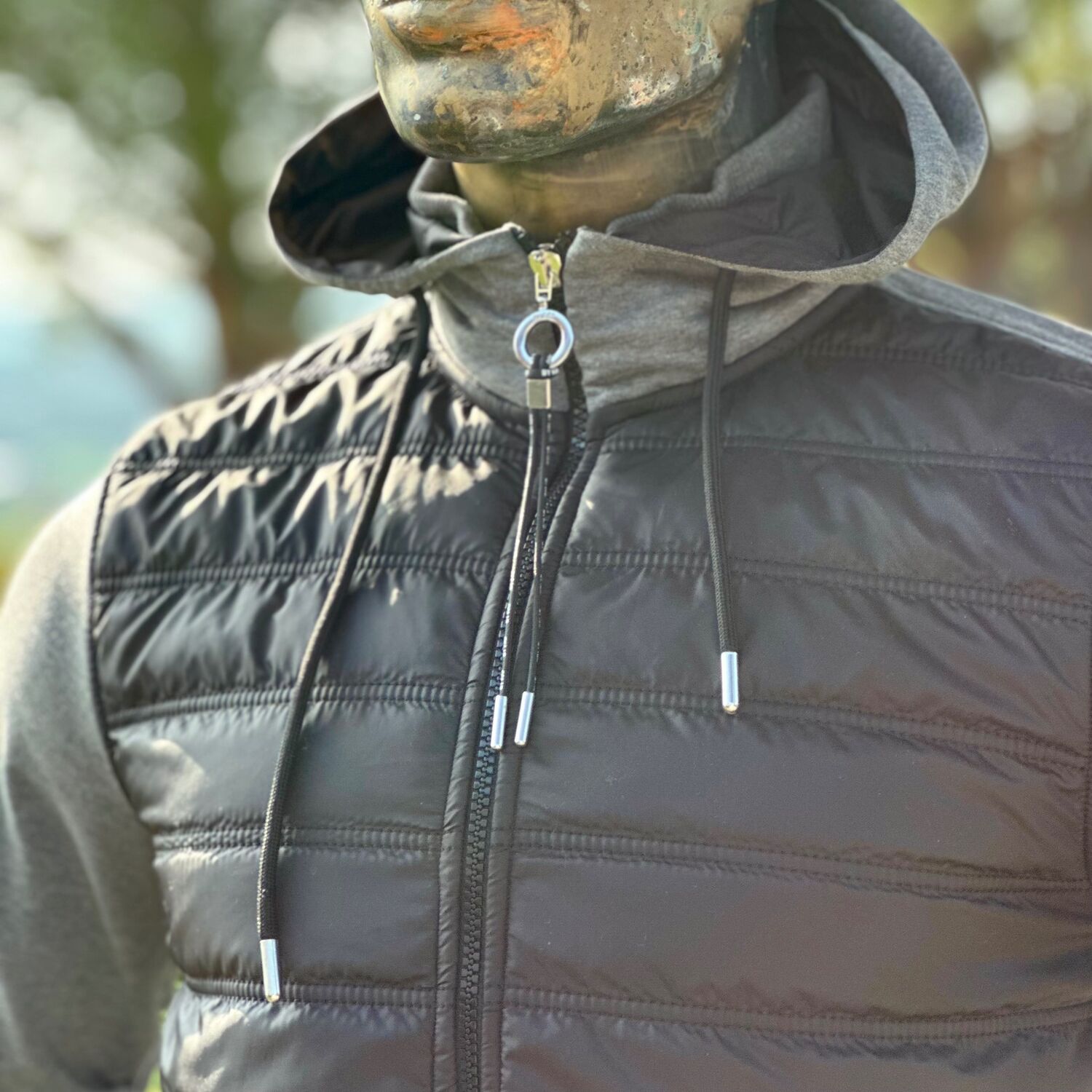 Col et capuche sont travaillés dans l'ensemble, afin de vous permettre de garder tout le confort de cette pièce en position fermée. Capuche souple.
